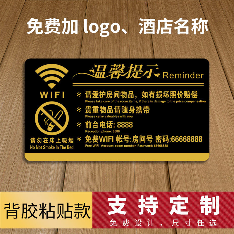 酒店提示牌 温馨 提示牌 宾馆wifi无线标识 请勿卧床吸烟酒店客房