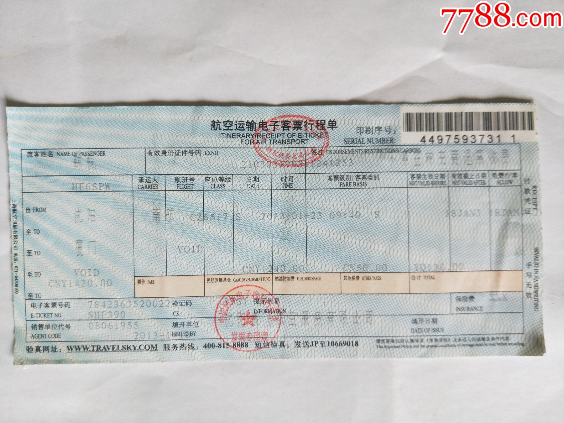是否有7842110077840电子订机票