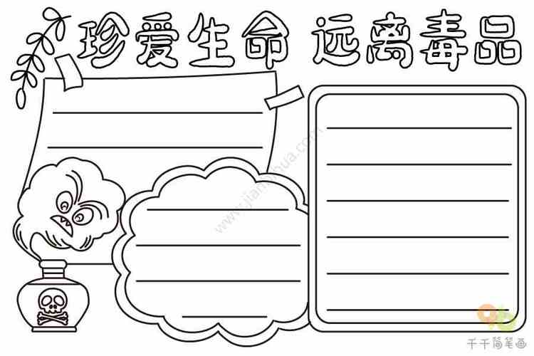 手抄报模板绘画素材国际禁毒日宣传画珍爱生命小学生呵护生命携手禁毒