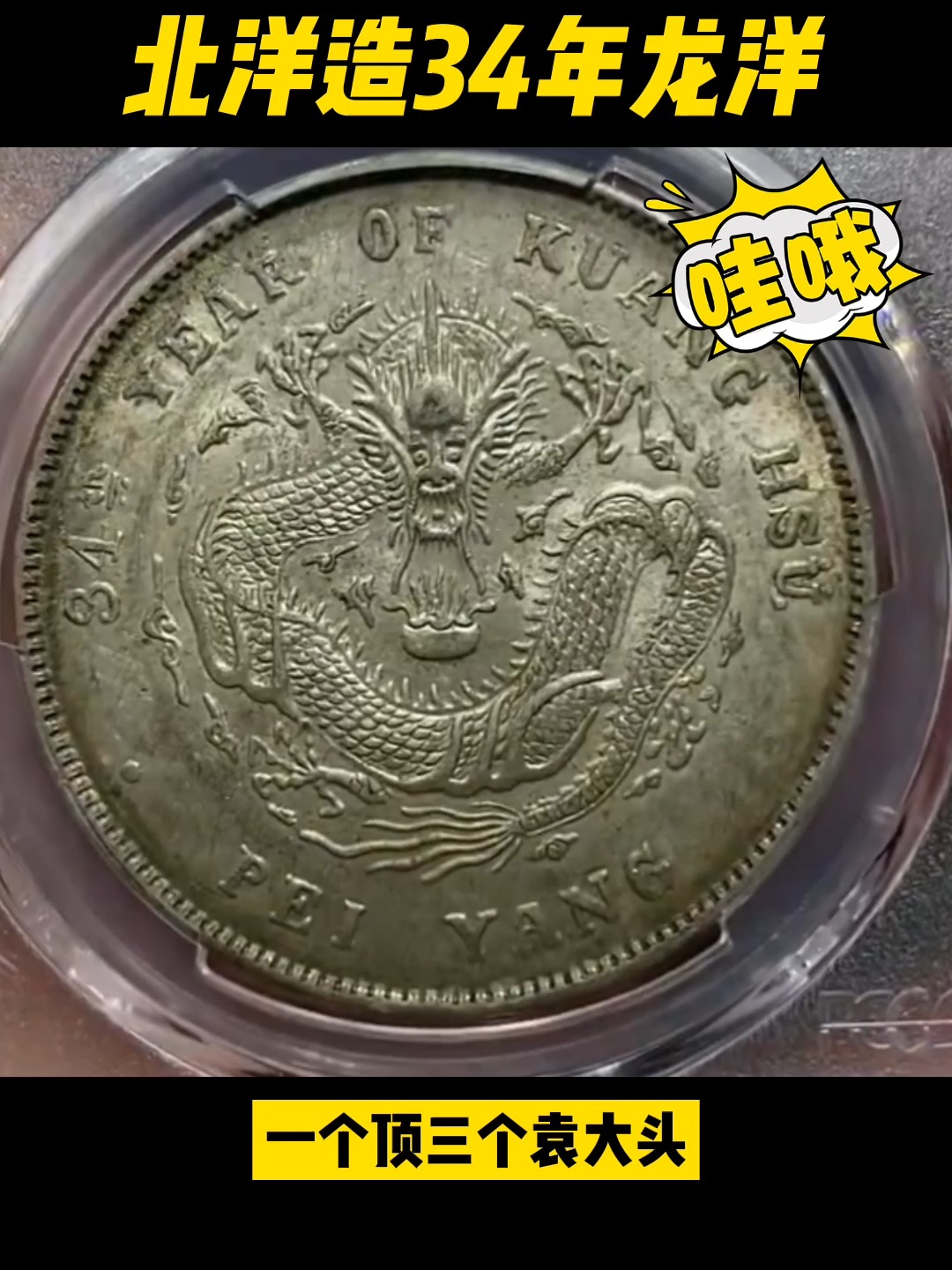 北洋龙银元.34年北洋光绪元宝库平七钱二分龙洋,银材质,老包 - 抖音