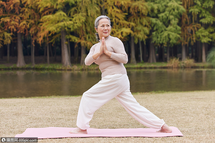 老奶奶在户外练习瑜伽