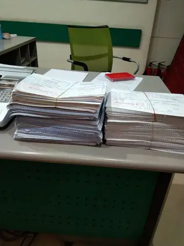桌子上有很多文件.在屏幕上模拟