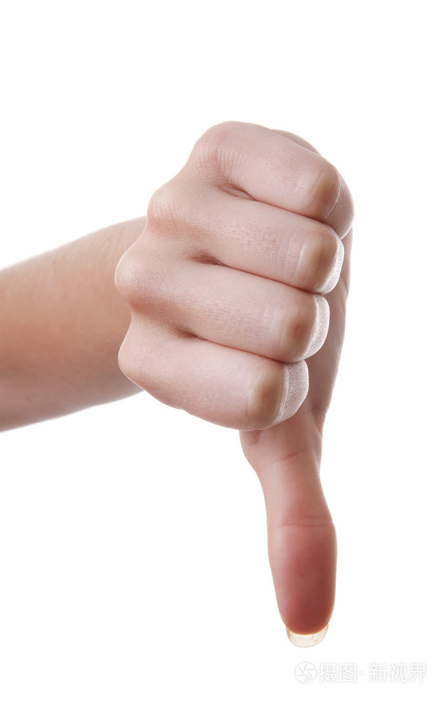大拇指朝下,垂直画幅,拇指,手,白色背景