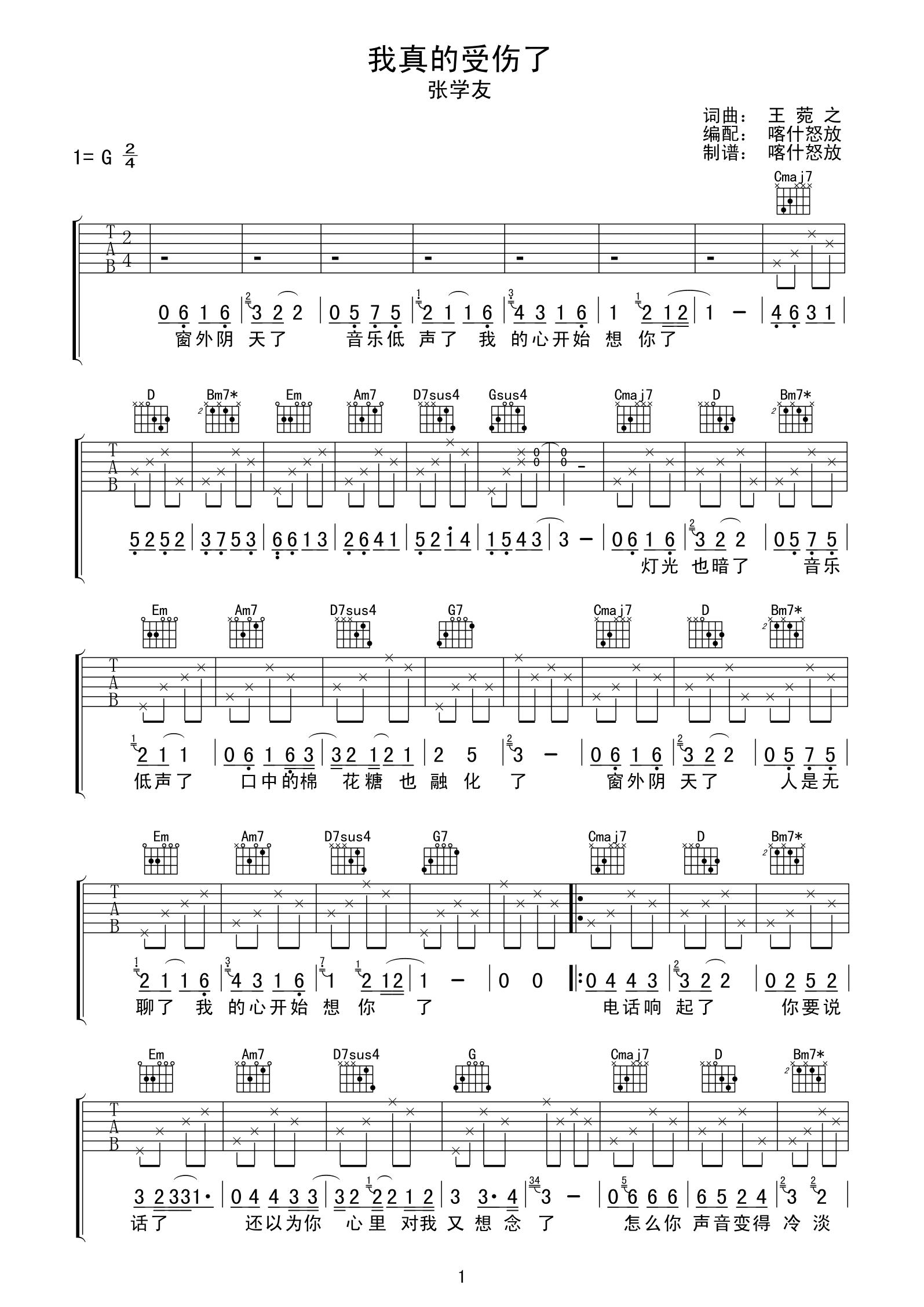 我真的受伤了(吉他谱)1