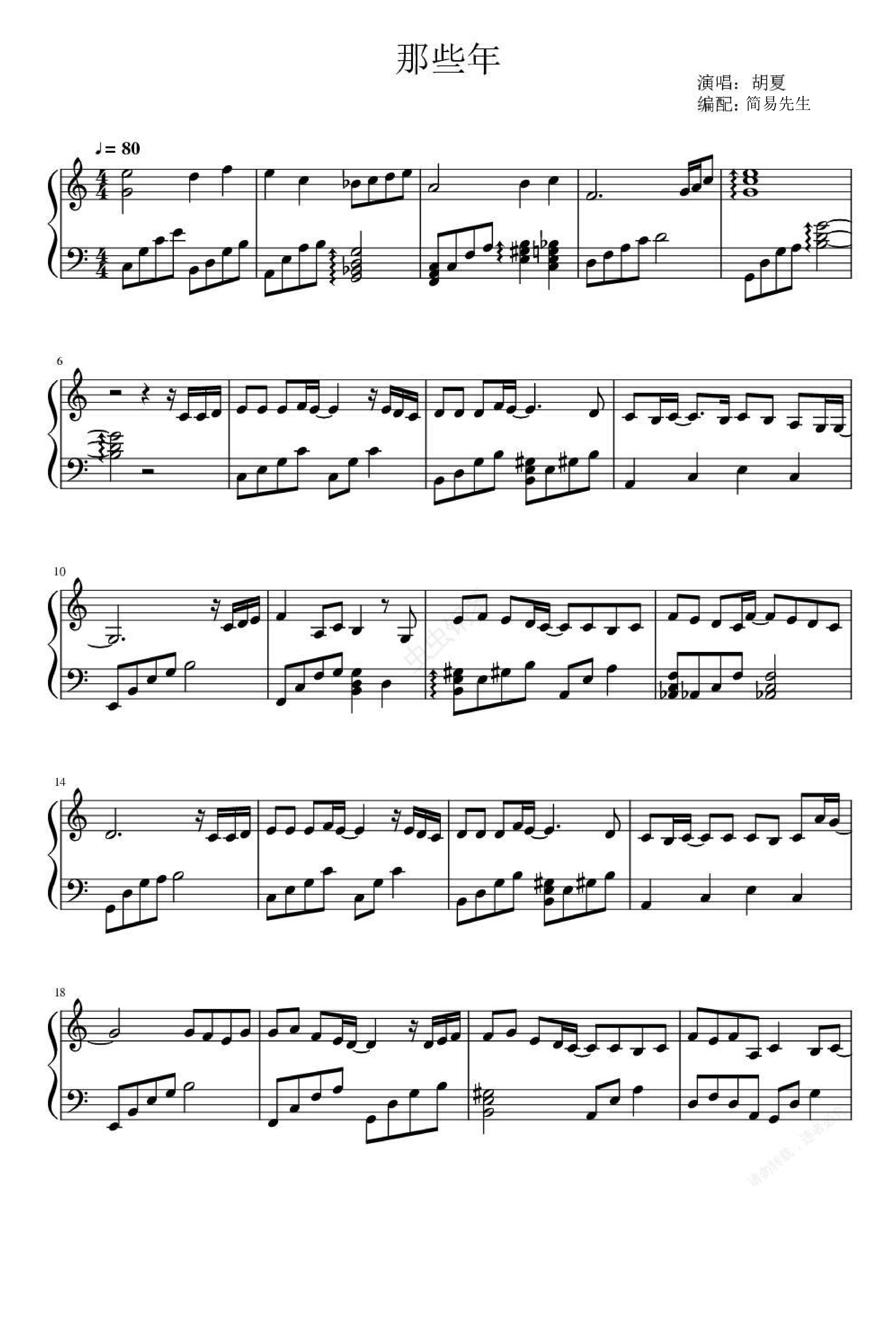 钢琴谱:那些年