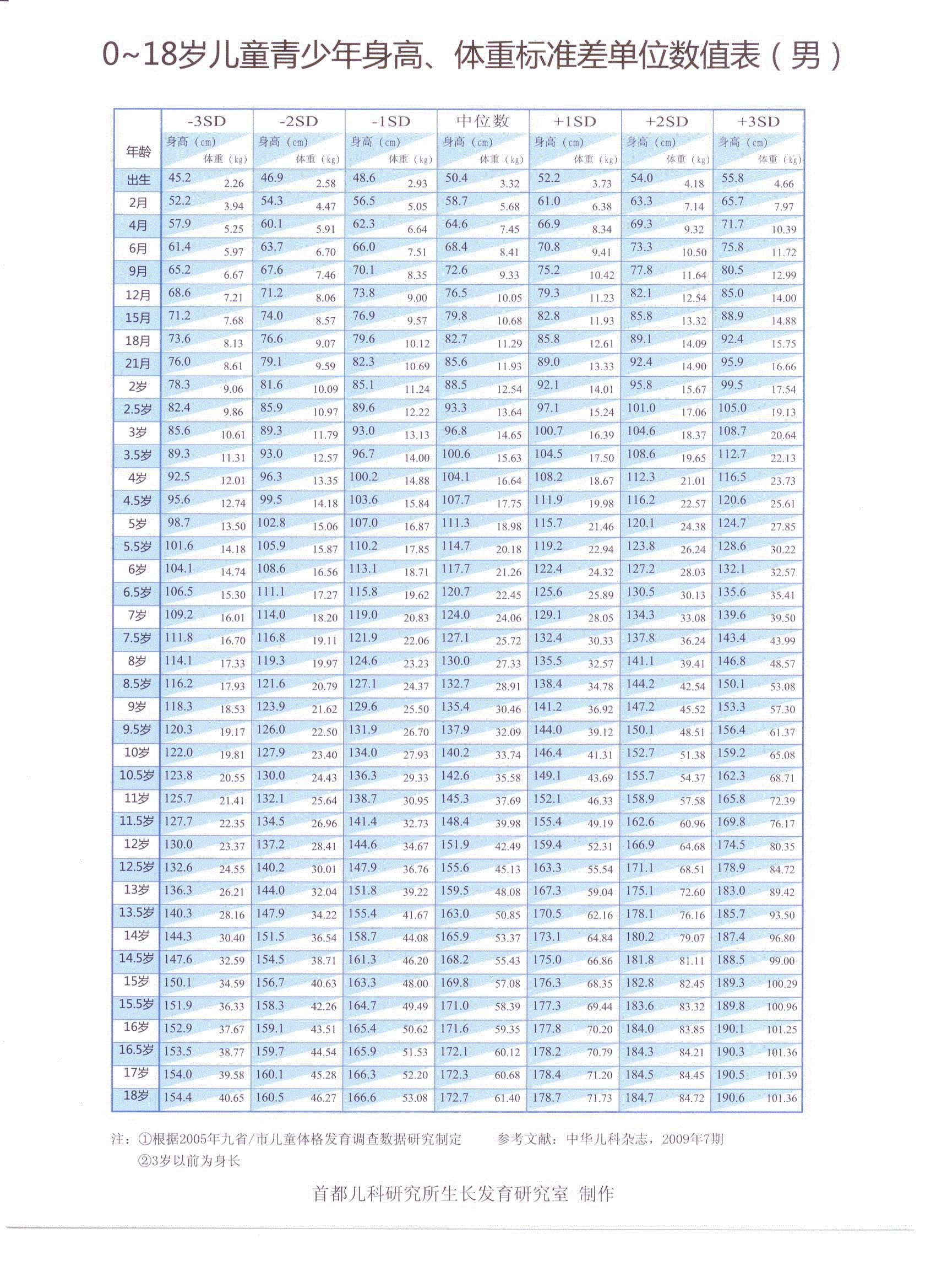 0—18岁男孩身高,体重标准差单位数值表(男) - 好大夫在线