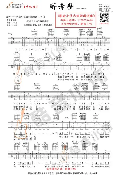 醉赤壁(酷音小伟吉他教学)吉他谱(图片谱,酷音小伟,弹唱,教学)_林俊杰