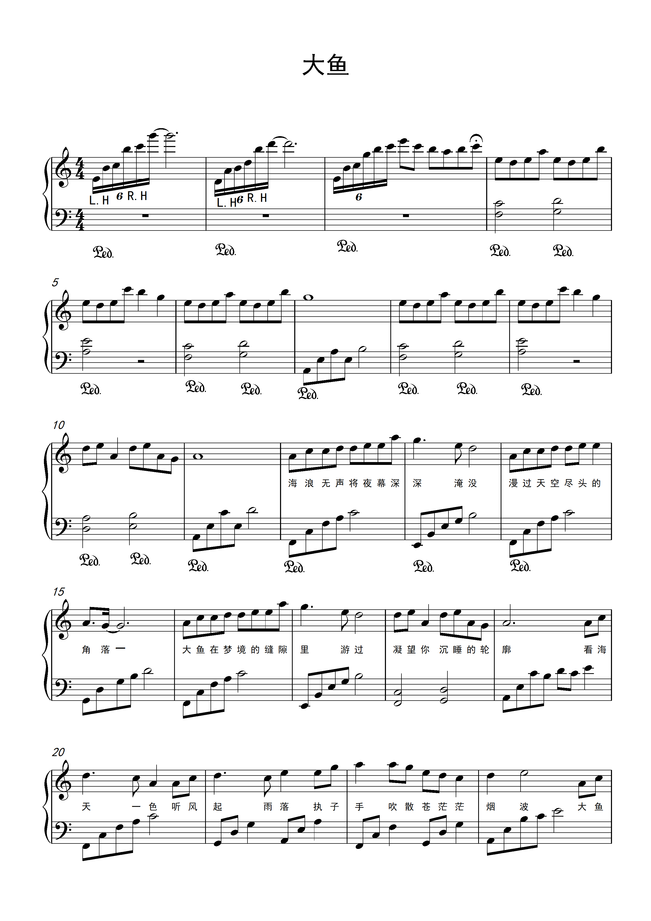 大鱼-华丽好听版五线谱预览1-钢琴谱文件(五线谱,双手简谱,数字谱