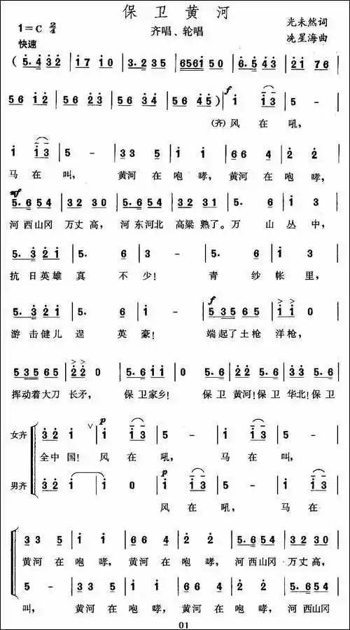 保卫黄河(《黄河大合唱》选曲)_合唱谱_曲谱下载网