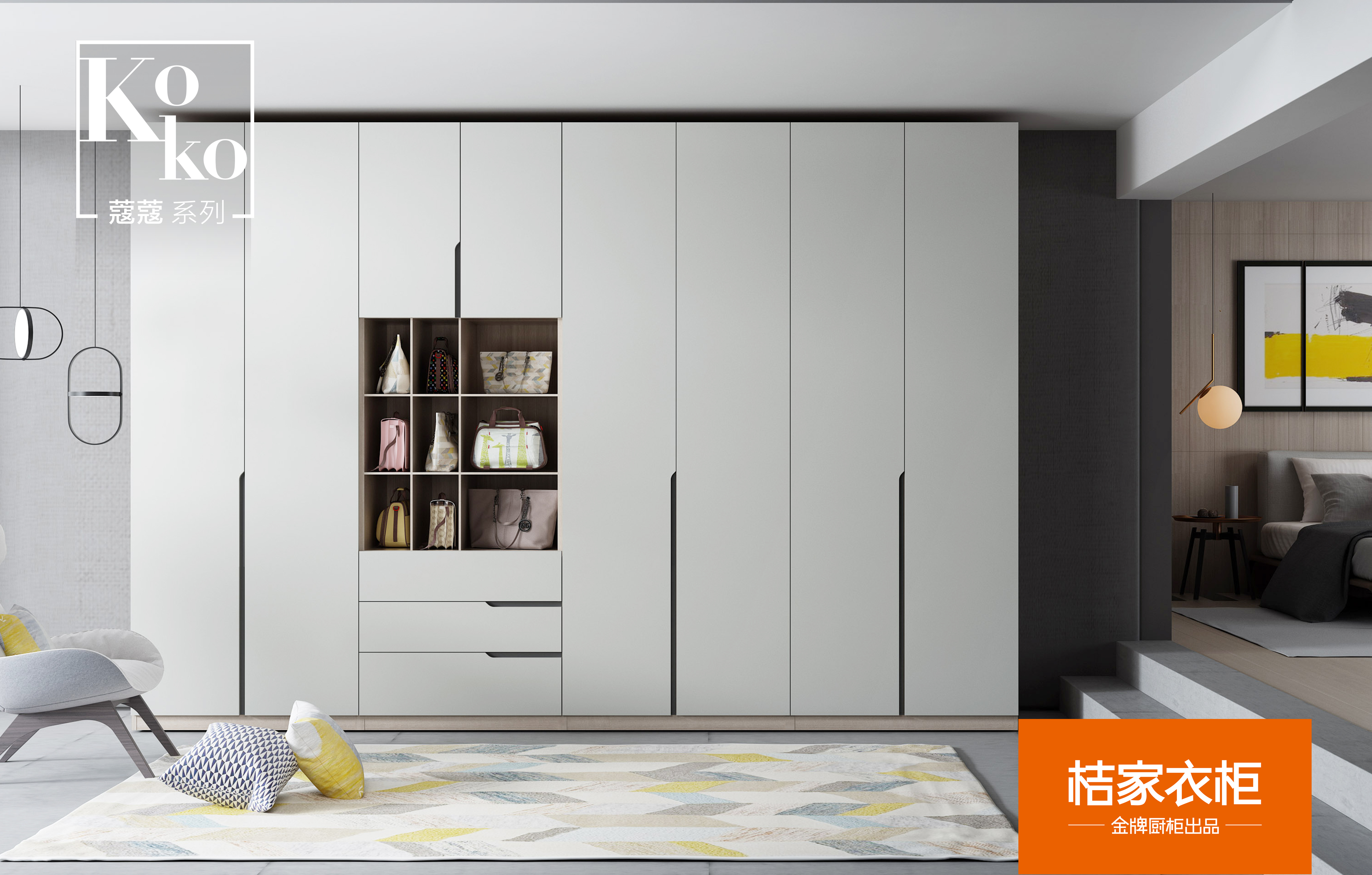 桔家衣柜采用j型隐藏式把手造型美观简约实用轻奢现代风
