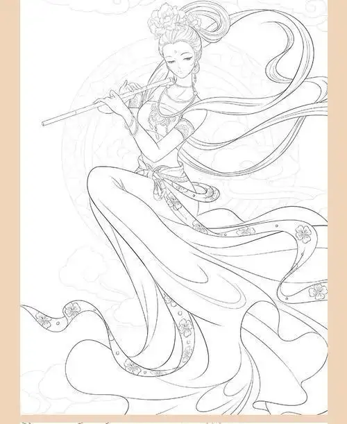 飞天仙女简笔画涂色(简笔画天宫仙女涂色) -【爱个性】