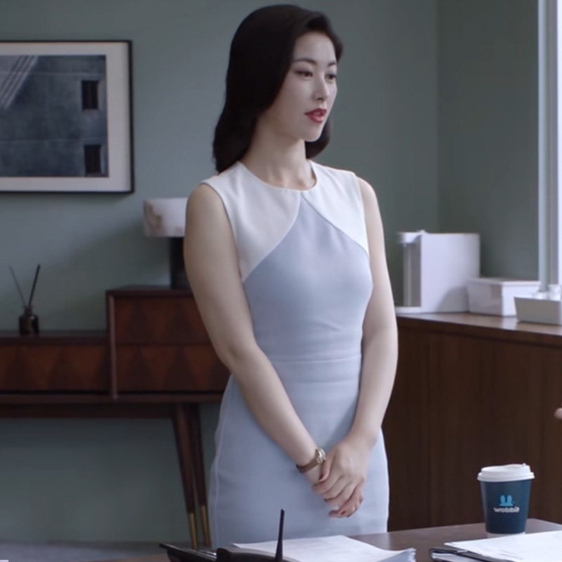 电视剧精英律师朱珠栗娜同款白色浅蓝拼接裙子无袖半身裙