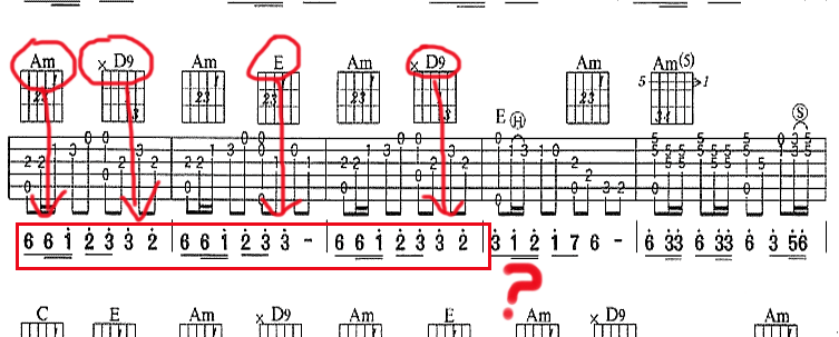 第一个cadd9和弦,意思是在c和弦的基础上,加上一个9音(re) .