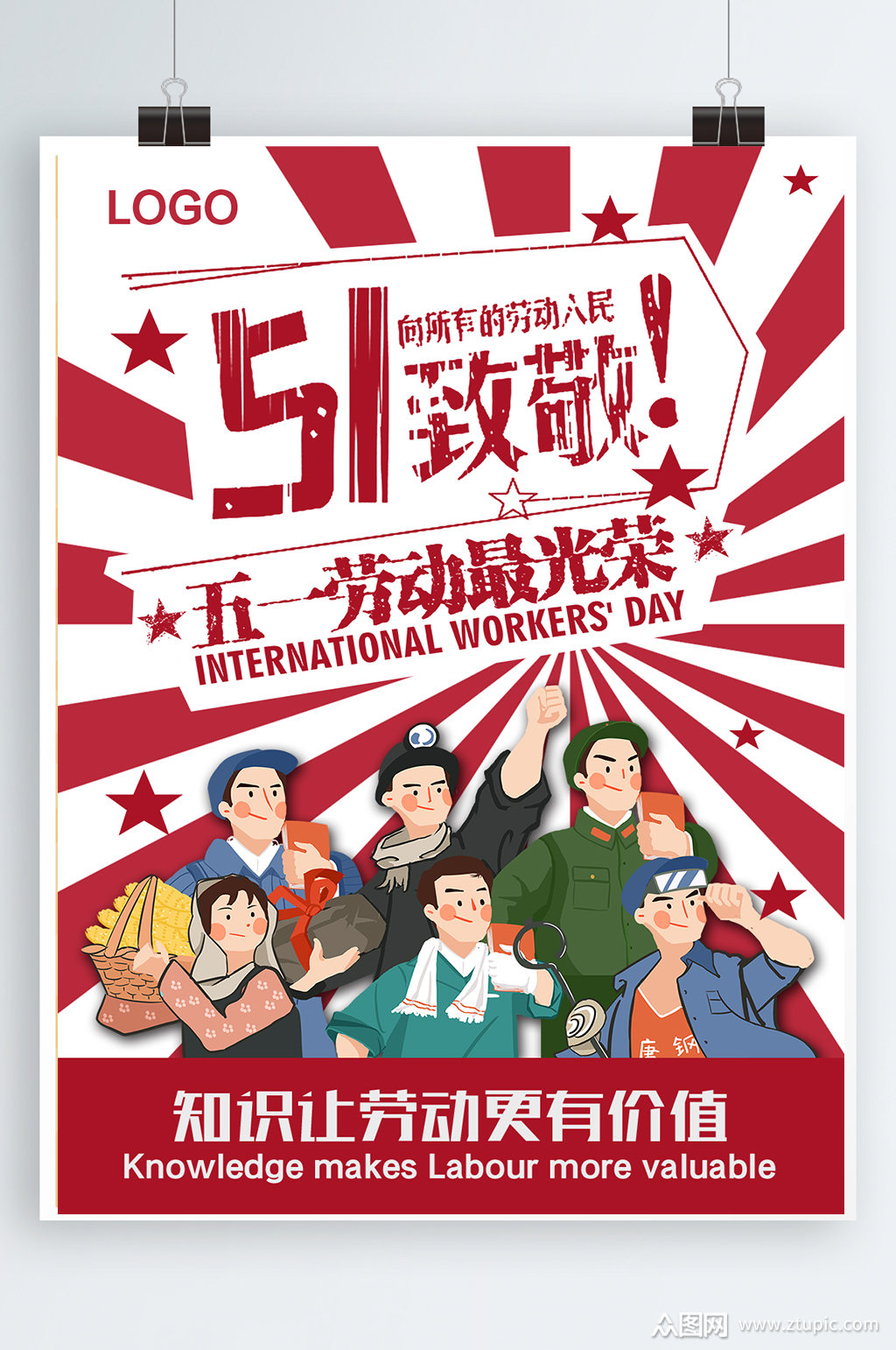 红色简约大气51五一劳动节劳动最光荣节日宣传海报五一劳动节劳模