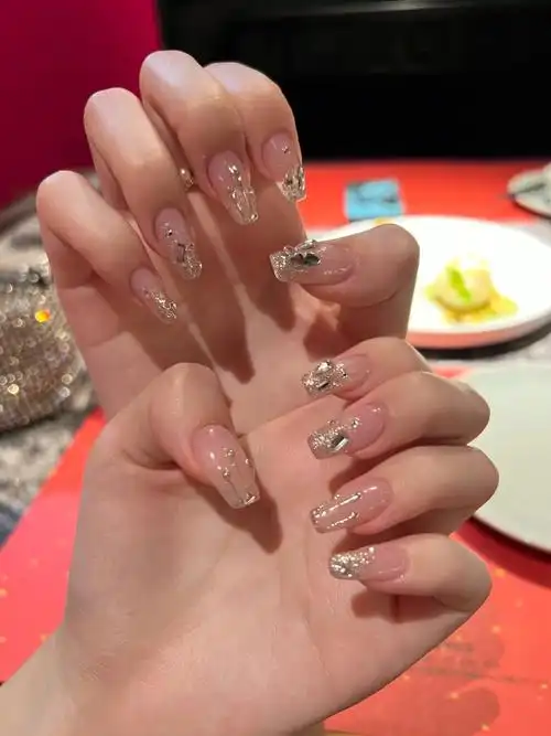 银色流沙未来感爆闪78超适合短甲的美甲