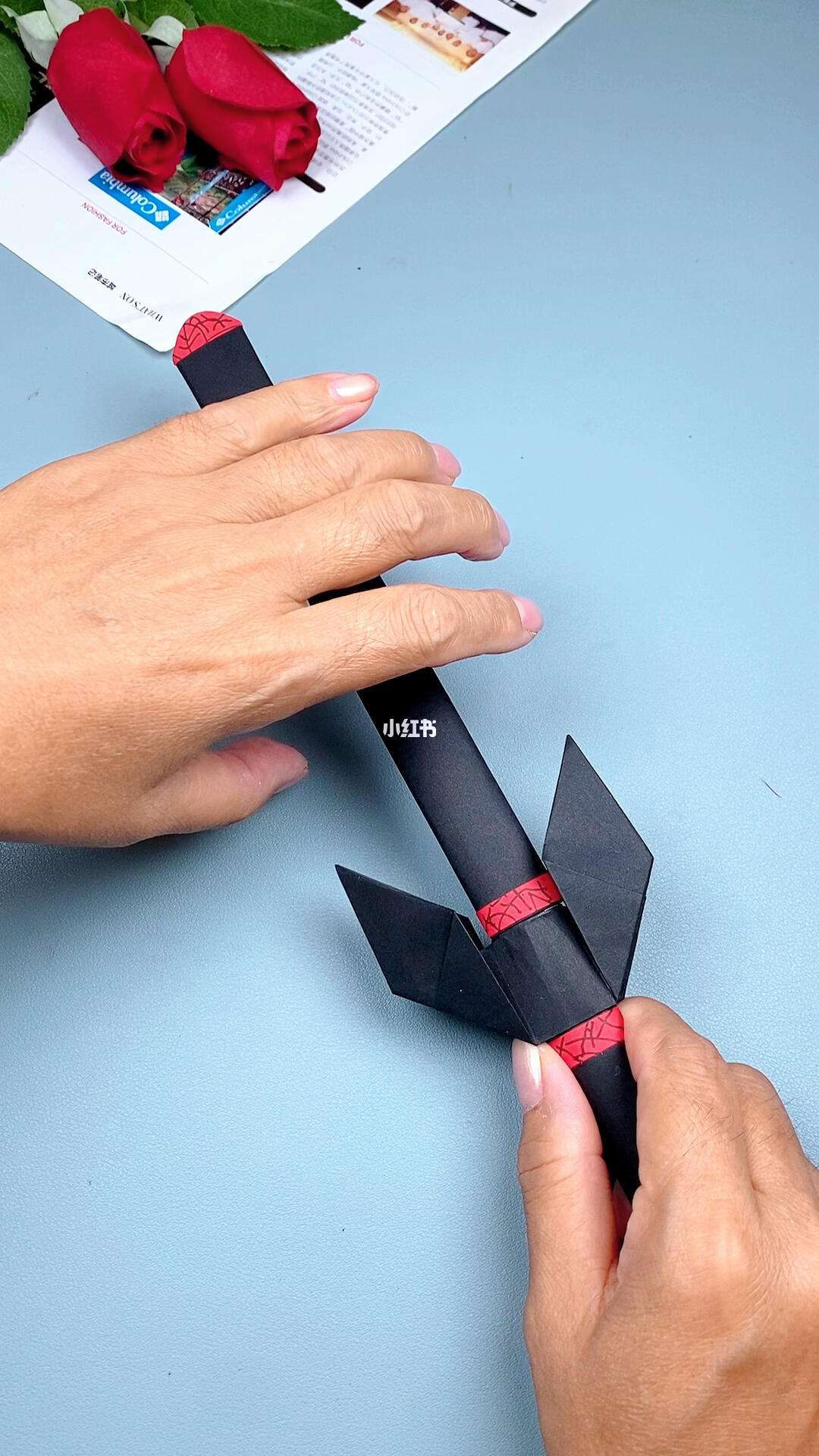 有剑套的忍者剑折纸课程,超级帅气,还很逼真,2张a4纸简单完成
