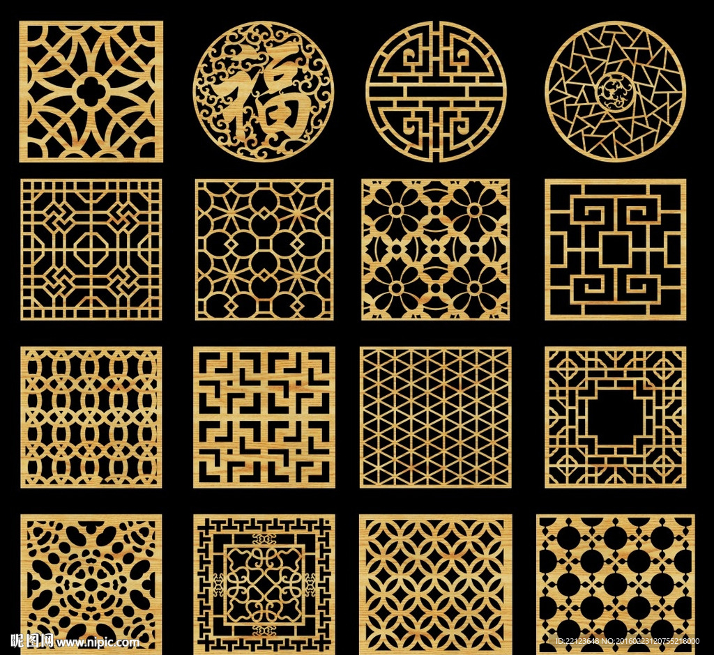 中式镂空花纹雕刻图案