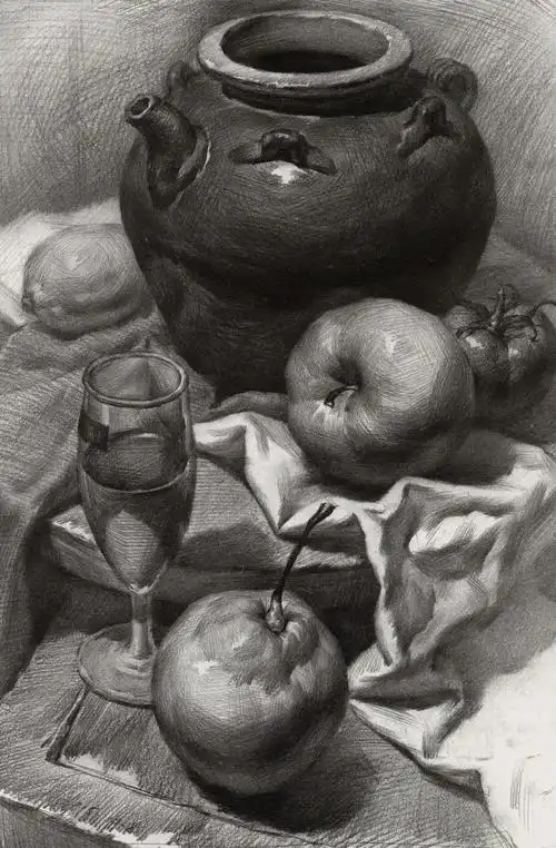 素描静物绘画作品图集,一组扎实的素描静物图片