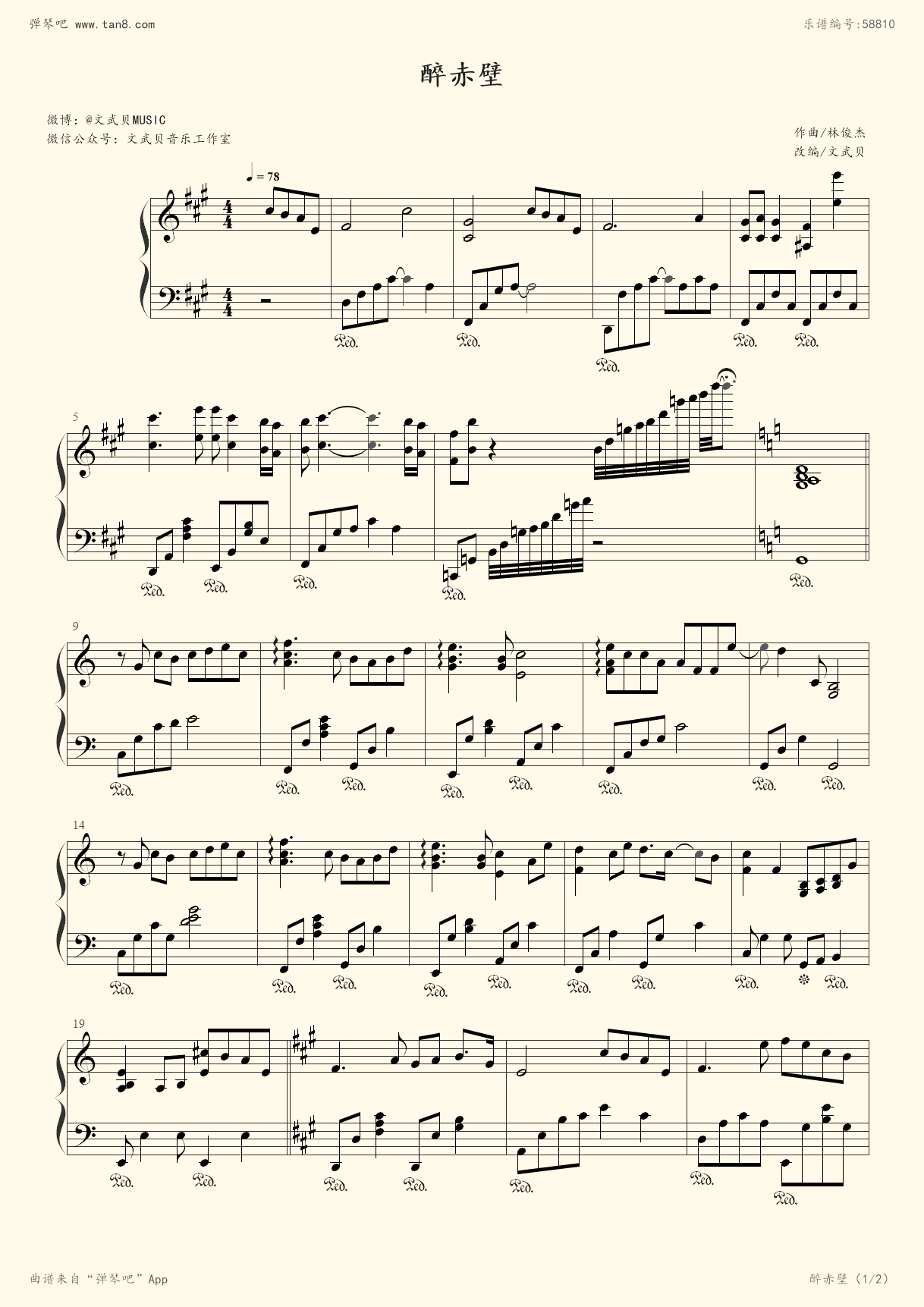 钢琴谱:醉赤壁(文武贝版)