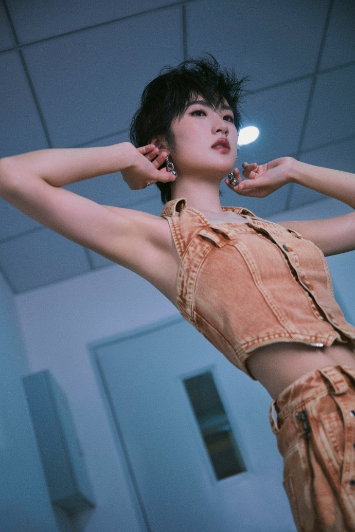 姚安娜最新写真释出,简约白衬衫搭牛仔裤干净利落.