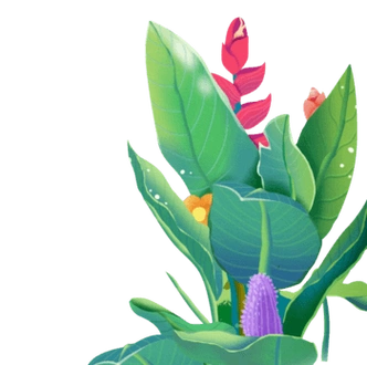 芭蕉叶卡通手绘png元素水彩植物花卉背景水彩热带植物边框背景素材