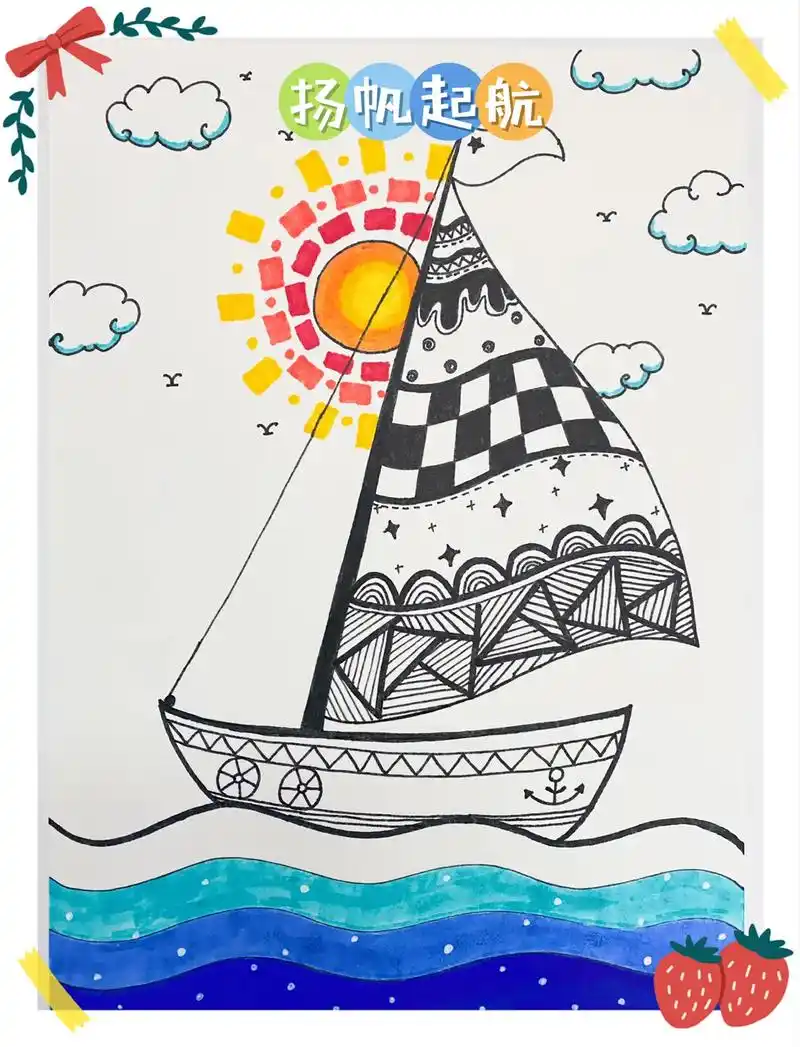 儿童线描作品:扬帆起航.#抖音图文来了 #原创作品 #创意美 - 抖音