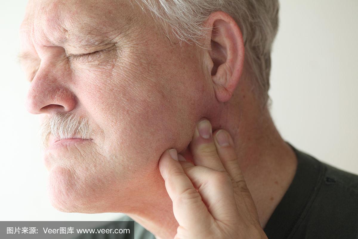 下巴疼痛的老人