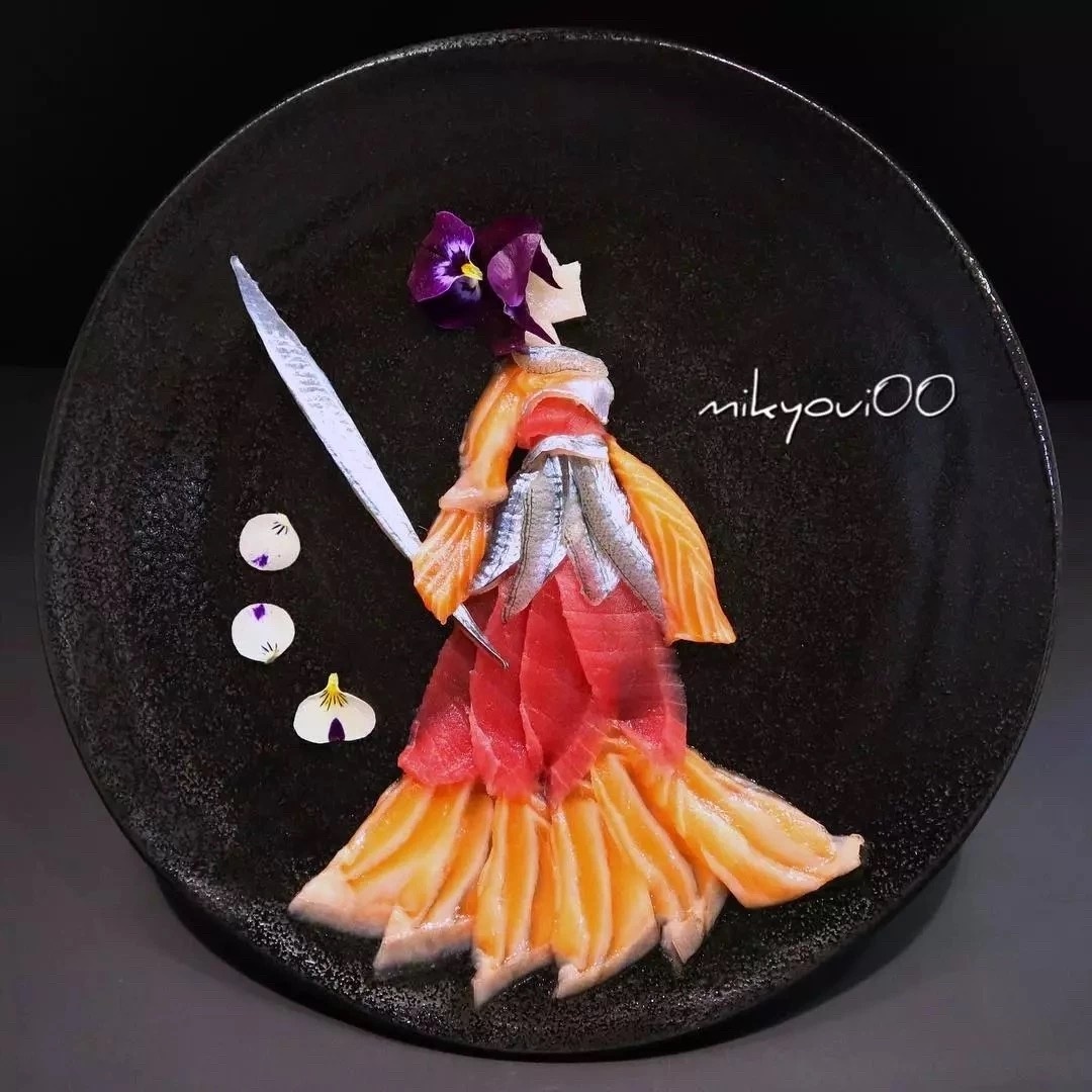 日料摆盘装饰 高端刺身盘冰盘干冰海鲜姿造三文鱼摆盘装饰日料鱼生