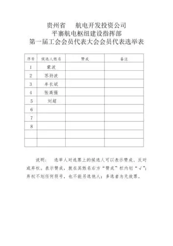 工会会员代表选举表