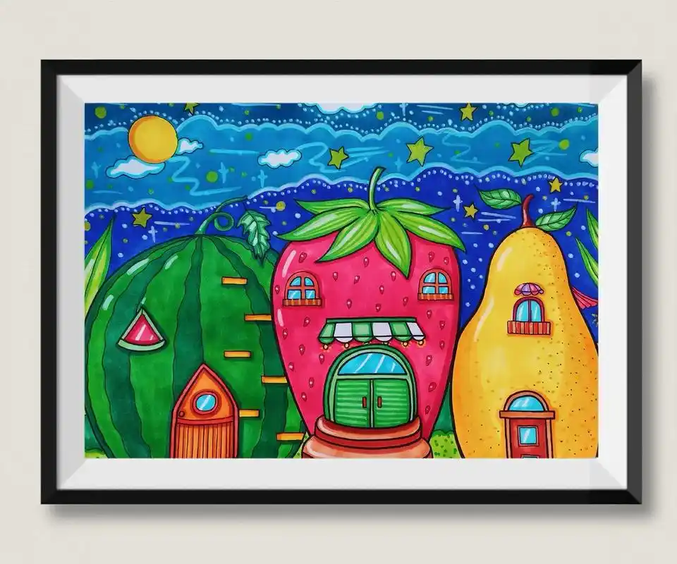 《水果房子》梦幻的水果屋,童话世界#创意美术 #儿童画 #创 - 抖音