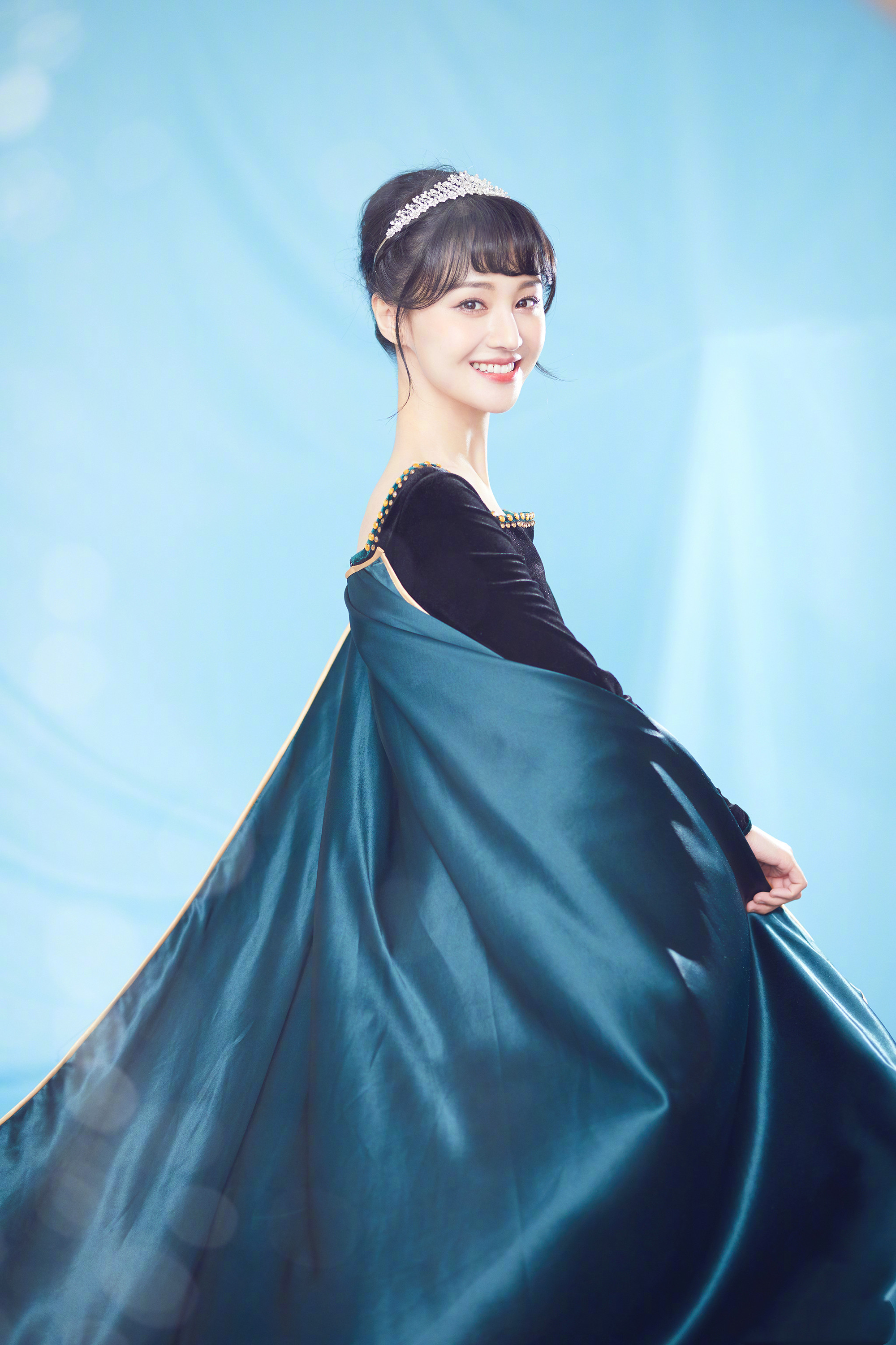 郑爽化身海的女儿穿海浪图案上衣配海蓝半身裙画面感超美