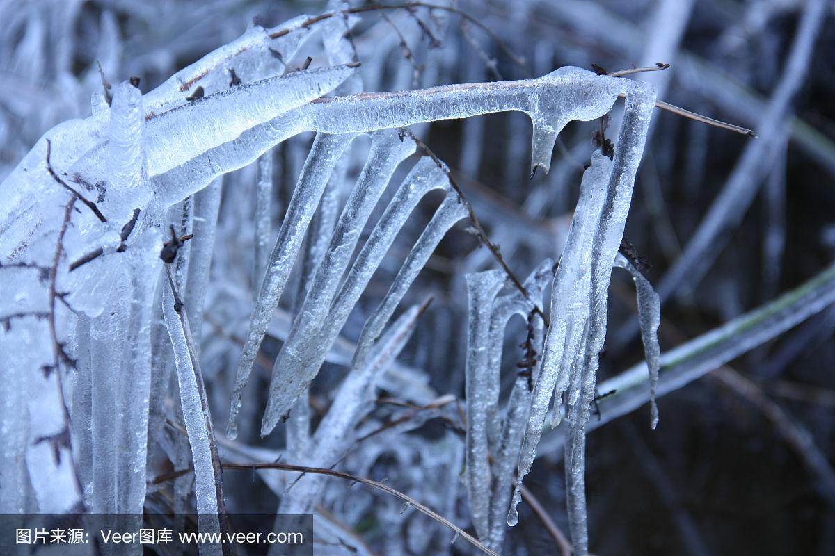 我们上山去祭拜爷爷,我发现山上的物体都结冰了.