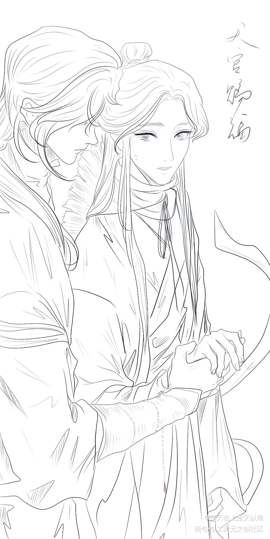 花怜相拥草稿_天官赐福花怜手绘绘画作品