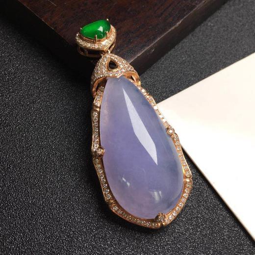 绿翠天成 翡翠冰紫水滴吊坠 冰种翡翠18k金镶钻缅甸天然a货玉石平安玉