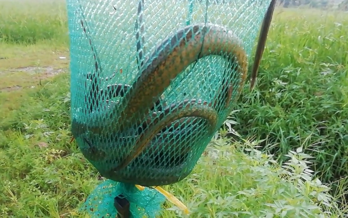 这地方的黄鳝真大,农村老头放一车地笼,第二天早上收获全是大货