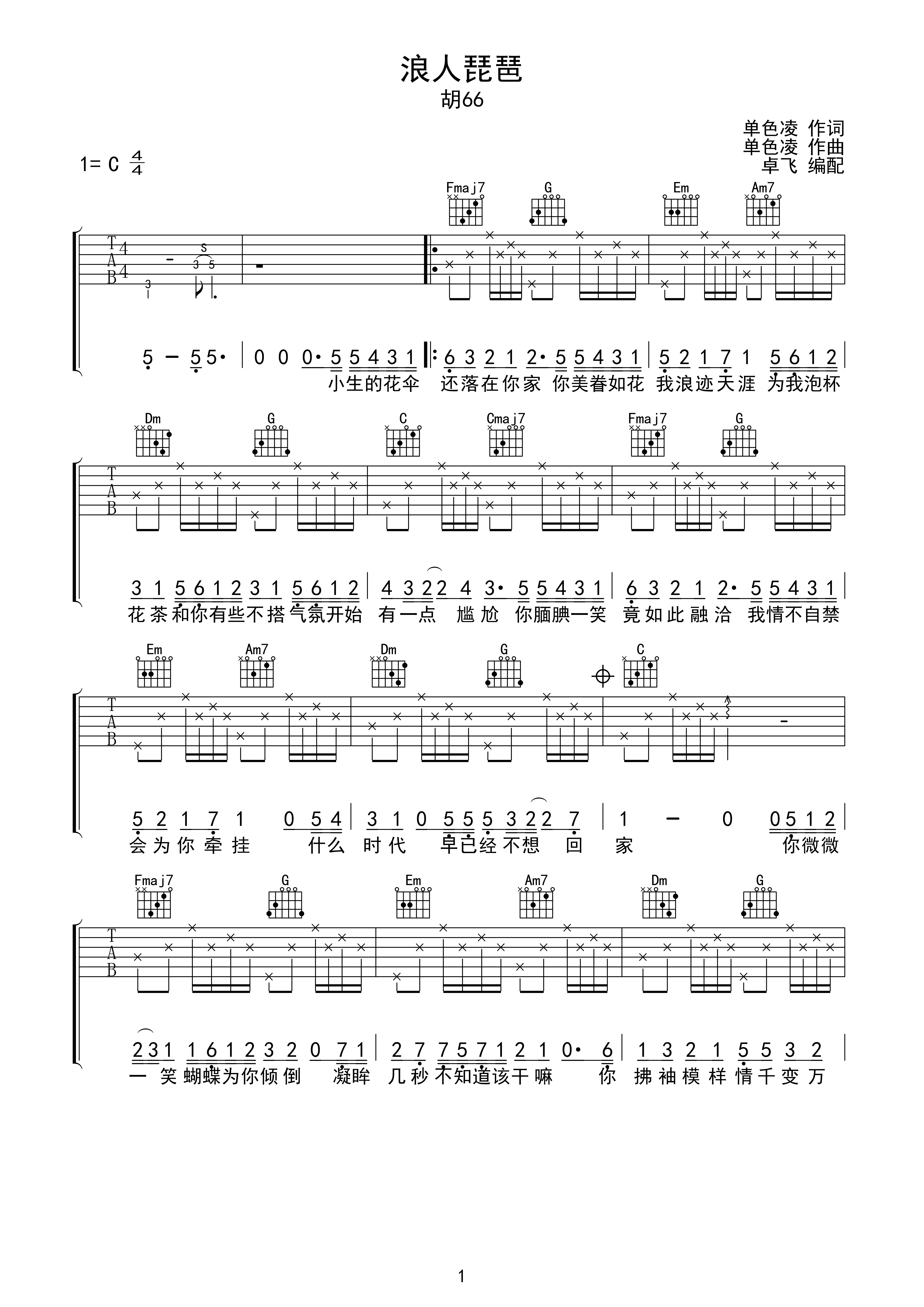 胡66浪人琵琶吉他谱c调吉他弹唱谱