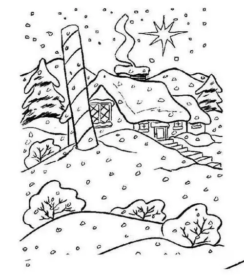 冬日大雪后的景色简笔画图片