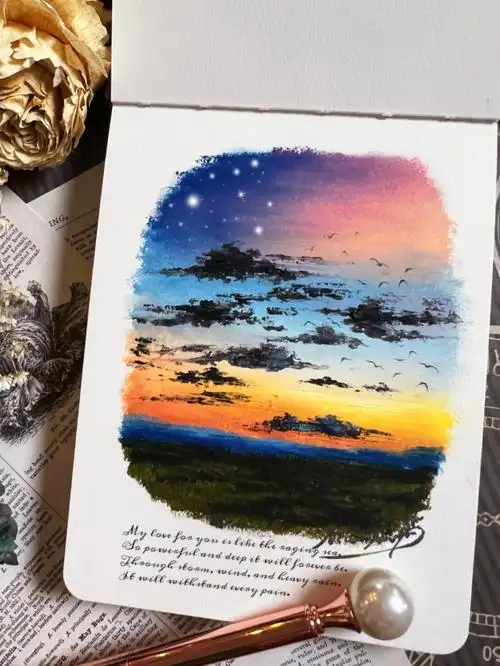 油画棒速涂火烧云落日附教程过程