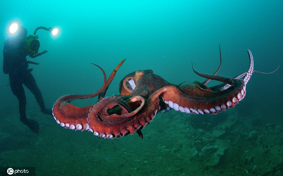 2020年9月14日报道,太平洋巨型章鱼是目前发现的最大章鱼种类,摄影师