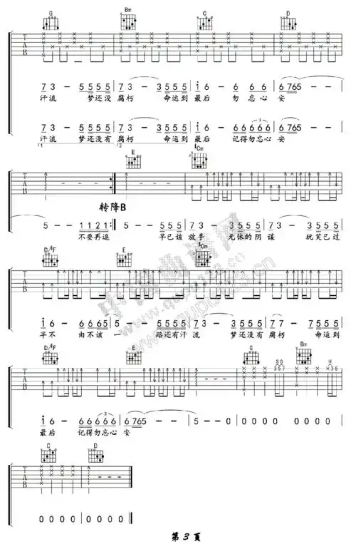 张杰《勿忘心安》吉他谱_g调原版六线谱_吉他弹唱教学1