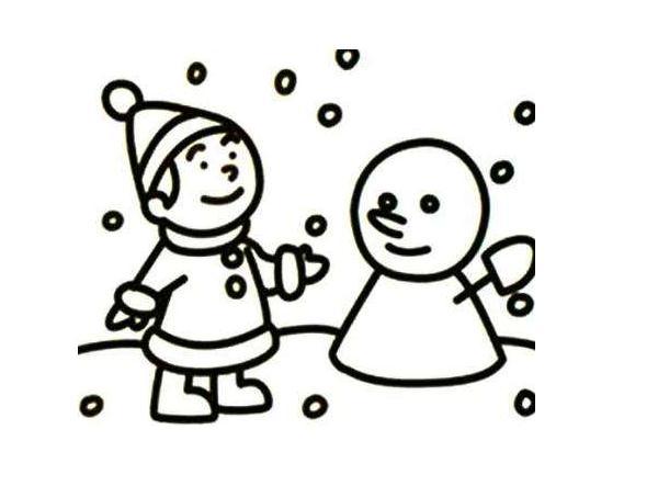 8张孩子们最喜欢的冬季活动堆雪人卡通涂色图片-红豆饭小学生简笔画