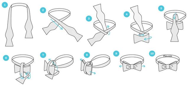 4,领带蝴蝶结系法,顾名思义,这种系法就类似我们平常打领带一样系,把