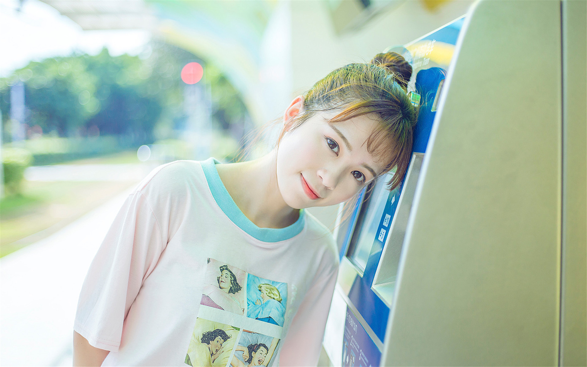 扎丸子头的可爱女生清新摄影桌面壁纸下载