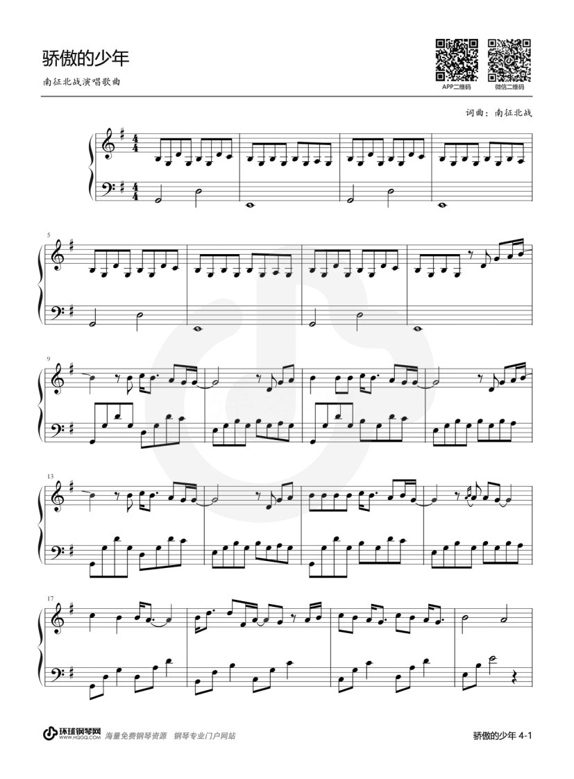 骄傲的少年钢琴谱 南征北战-骄傲的少年五线谱