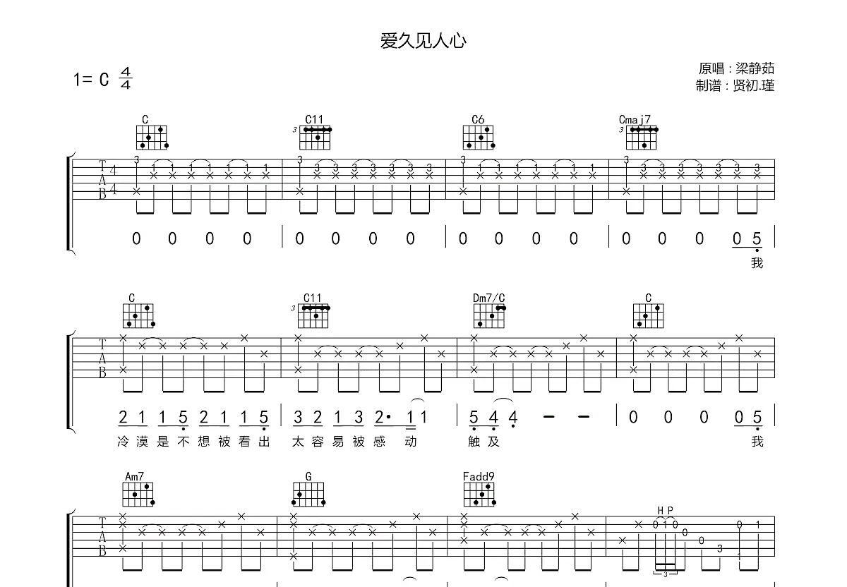 爱久见人心吉他谱_梁静茹_c调弹唱74%专辑版 - 吉他世界