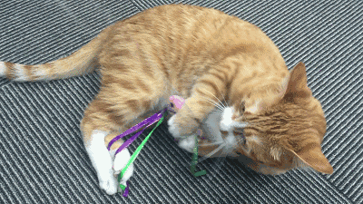 就差逗的人了也有了,逗棒也有了,猫咪大老远把逗猫棒叼来甩主人面前