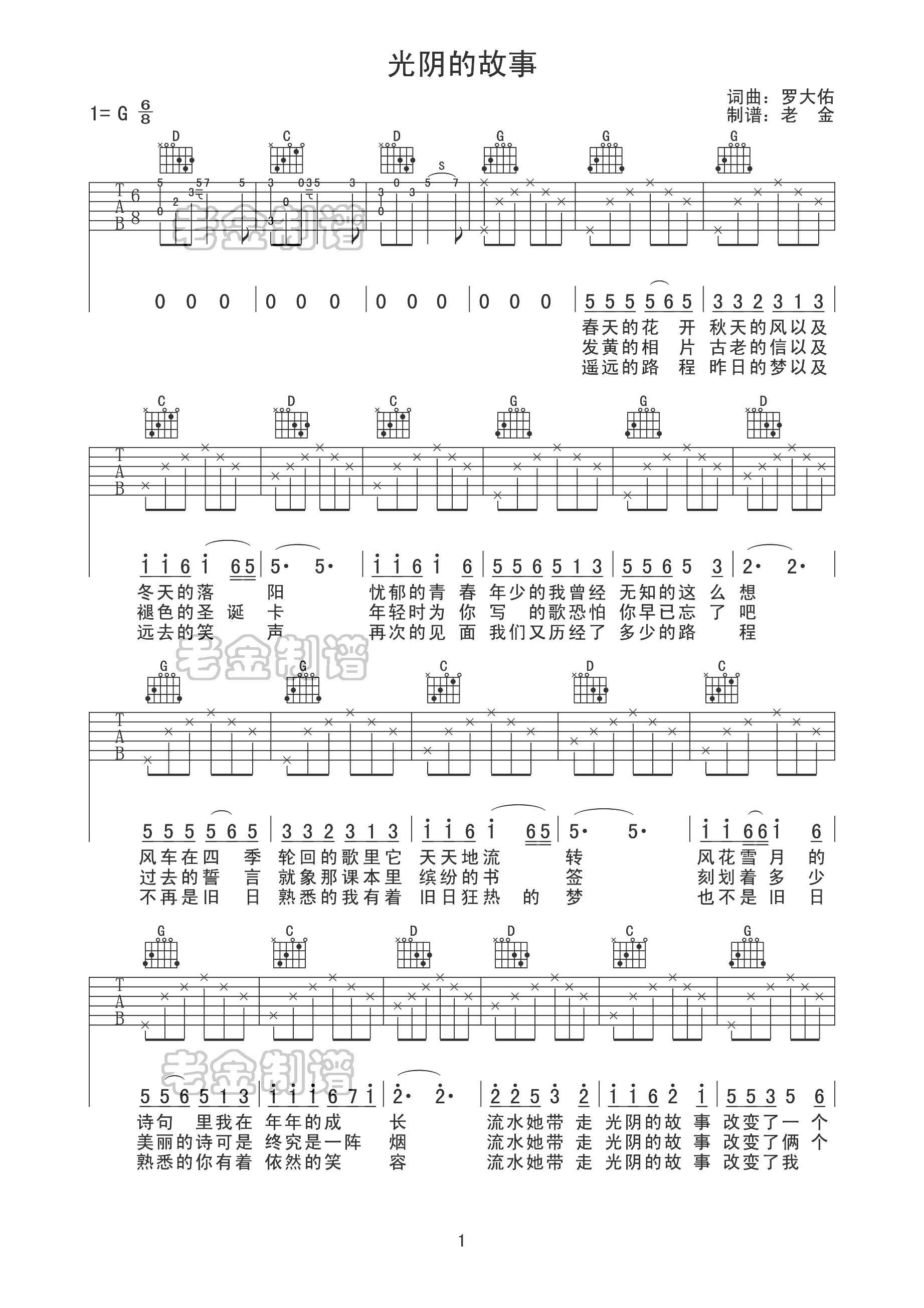罗大佑罗大佑光阴的故事吉他谱g调简单版吉他谱