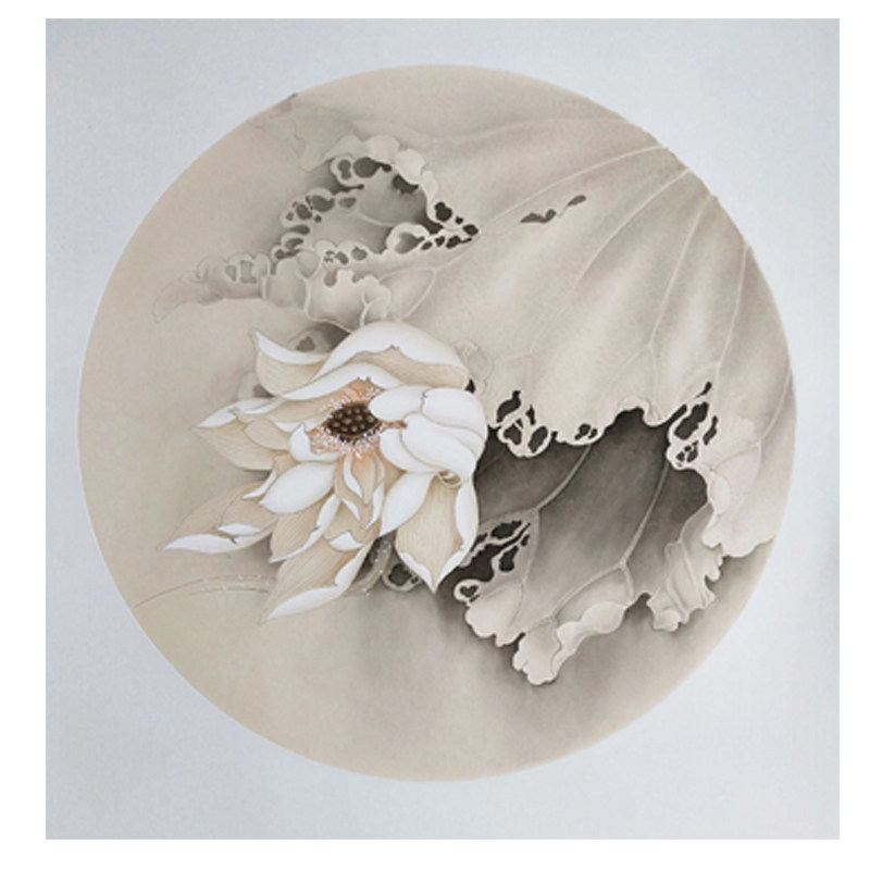 两洁不容尘有污,一圆还与世无争.工笔圆形扇面作品欣赏