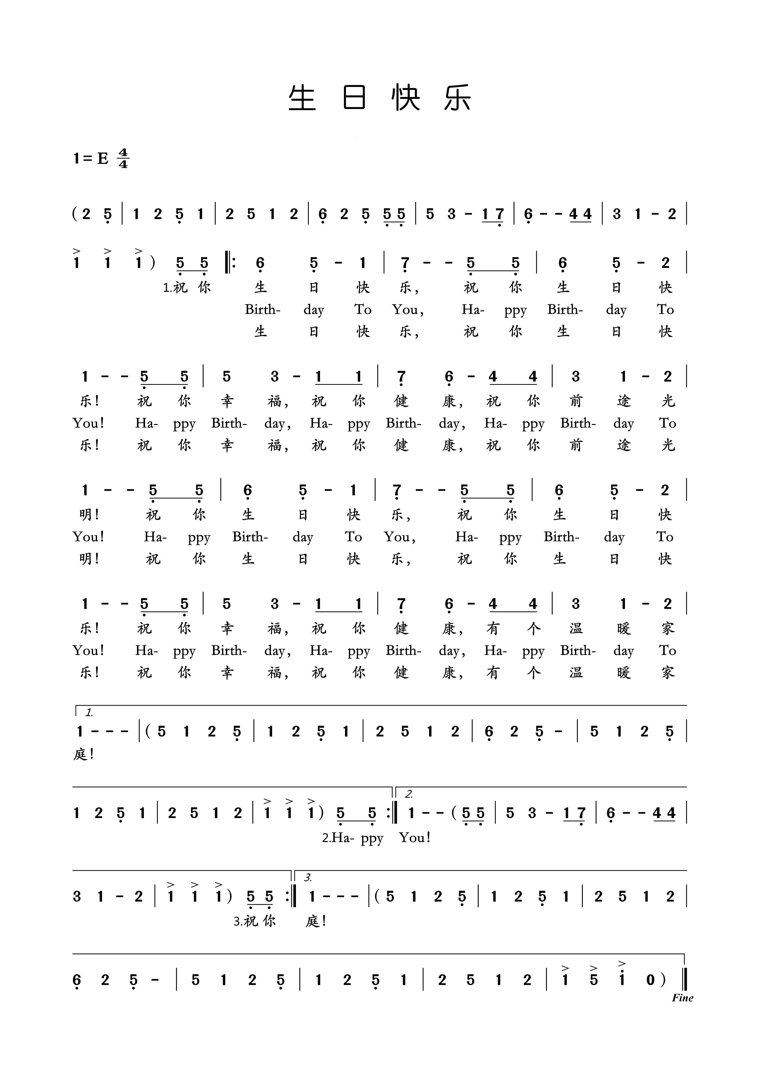 《生日快乐》完整版简谱