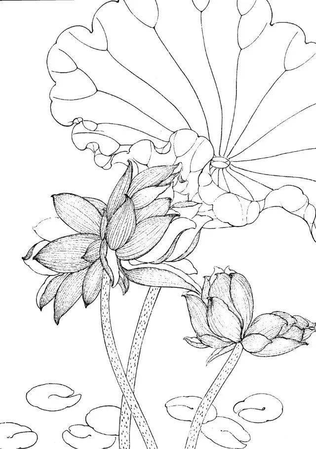 素材| 一组工笔白描荷花33图 值得收藏临摹